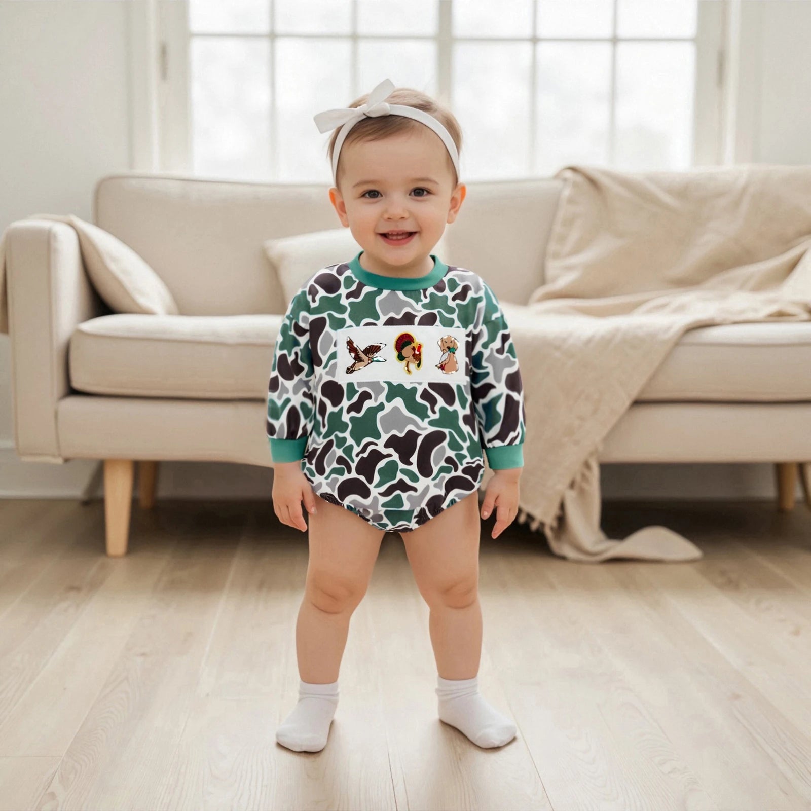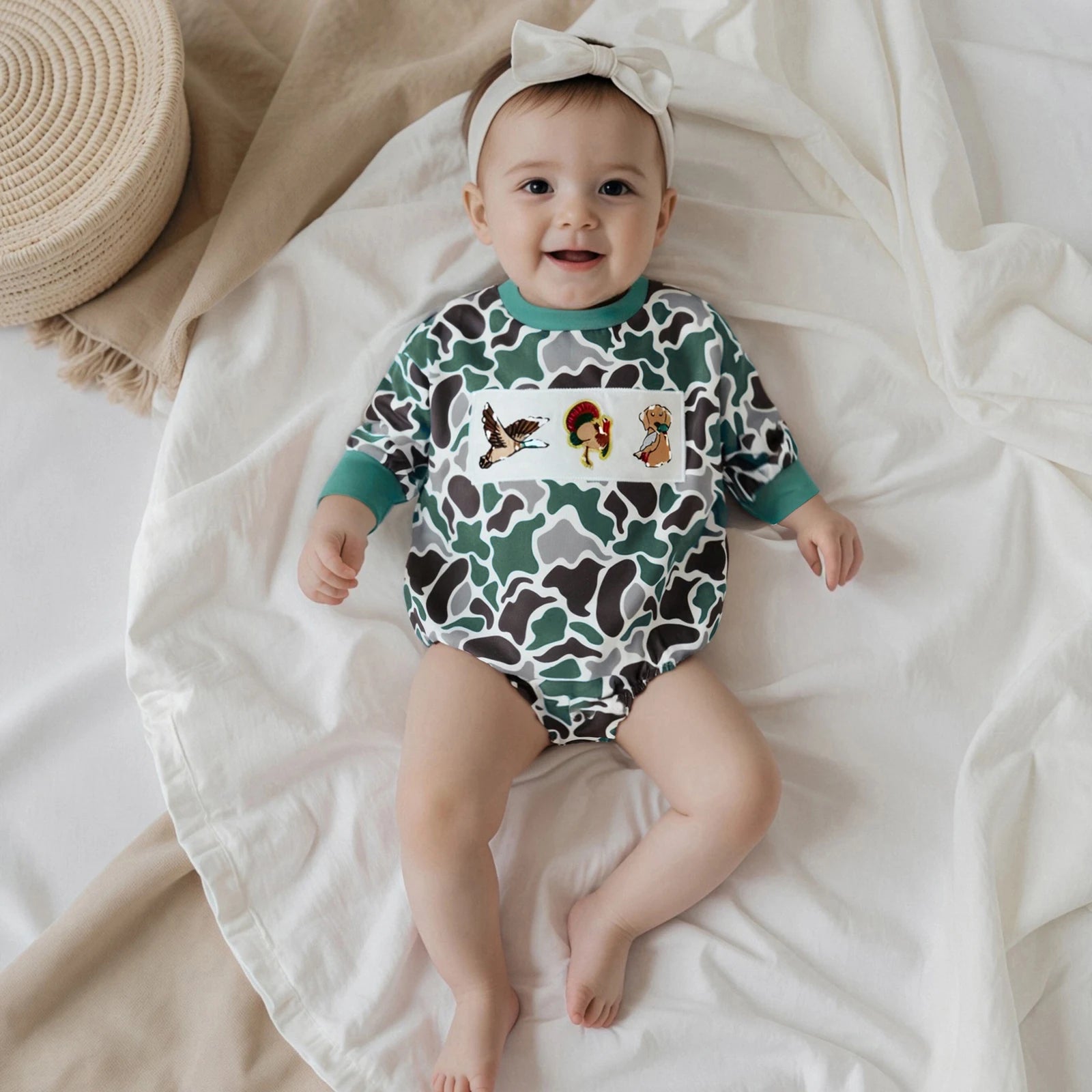 Hearth‑Camo Little Stag Romper
