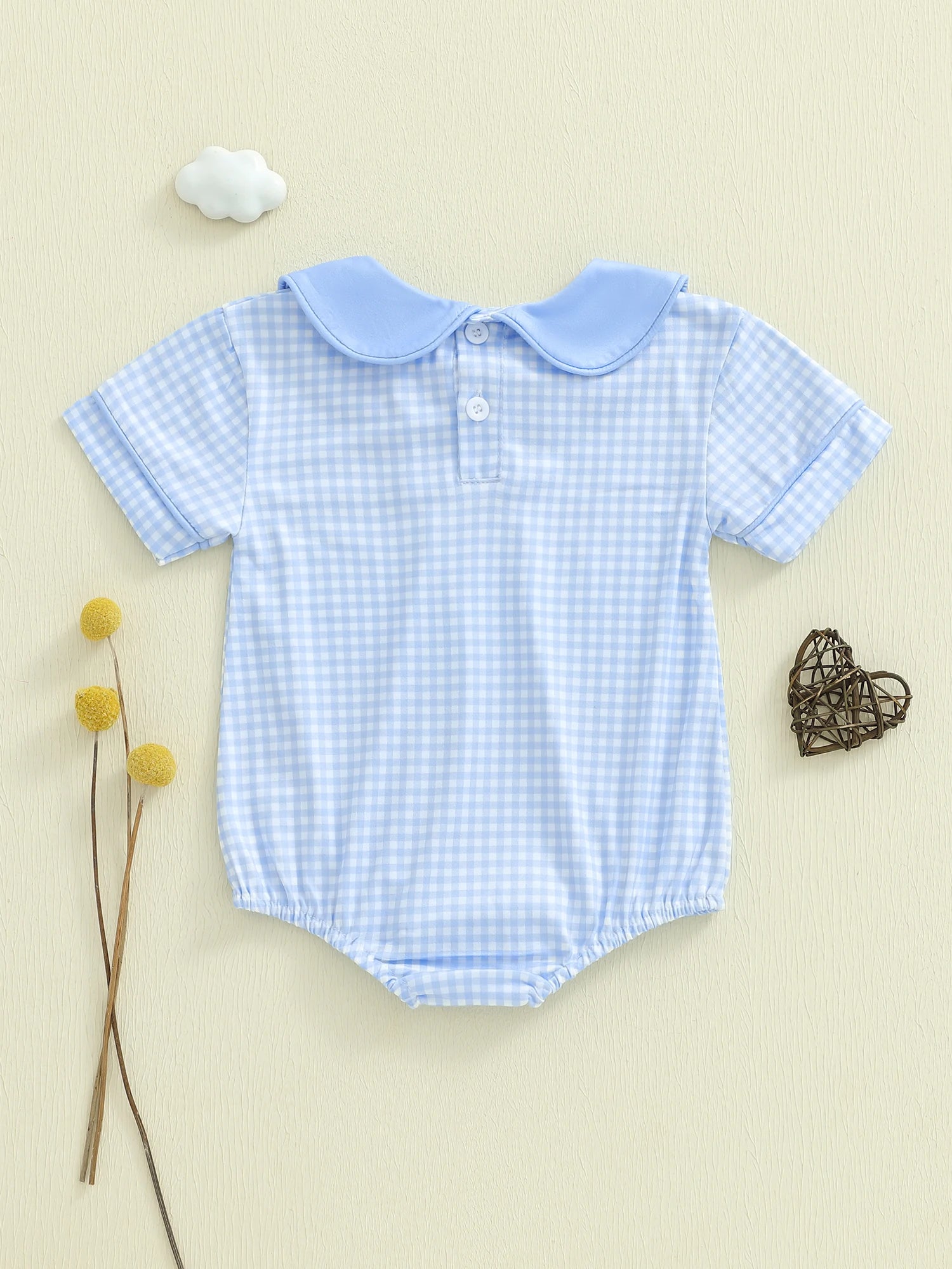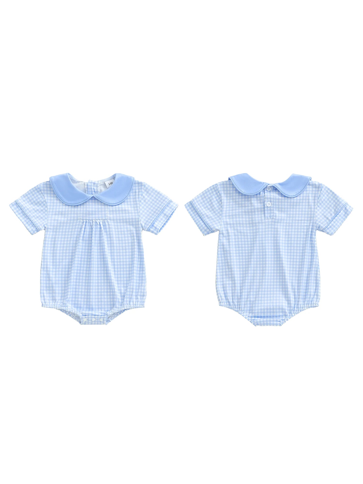 Like a checkered meadow caught in a sunbeam, this little jumpsuit gathers a child into warm, everyday delight. The soft, stretchy plaid fabric and sweet doll collar flutter like petals; short sleeves and a true‑to‑size cut let play and toddle move without fuss. Embroidered seams and gentle tatting‑inspired weave cradle the skin with the quiet care of a practiced hand. Sized for 4–6 years, it is a humble talisman for backyard adventures, porchside stories, and the slow, steady work of growing into the world.