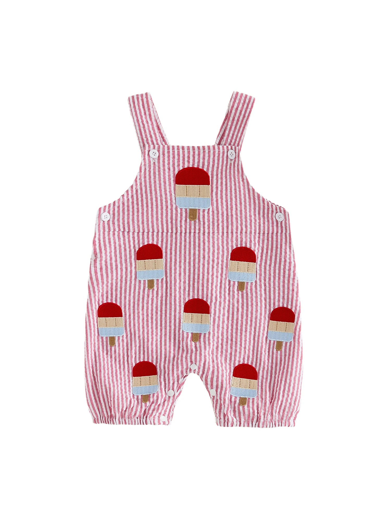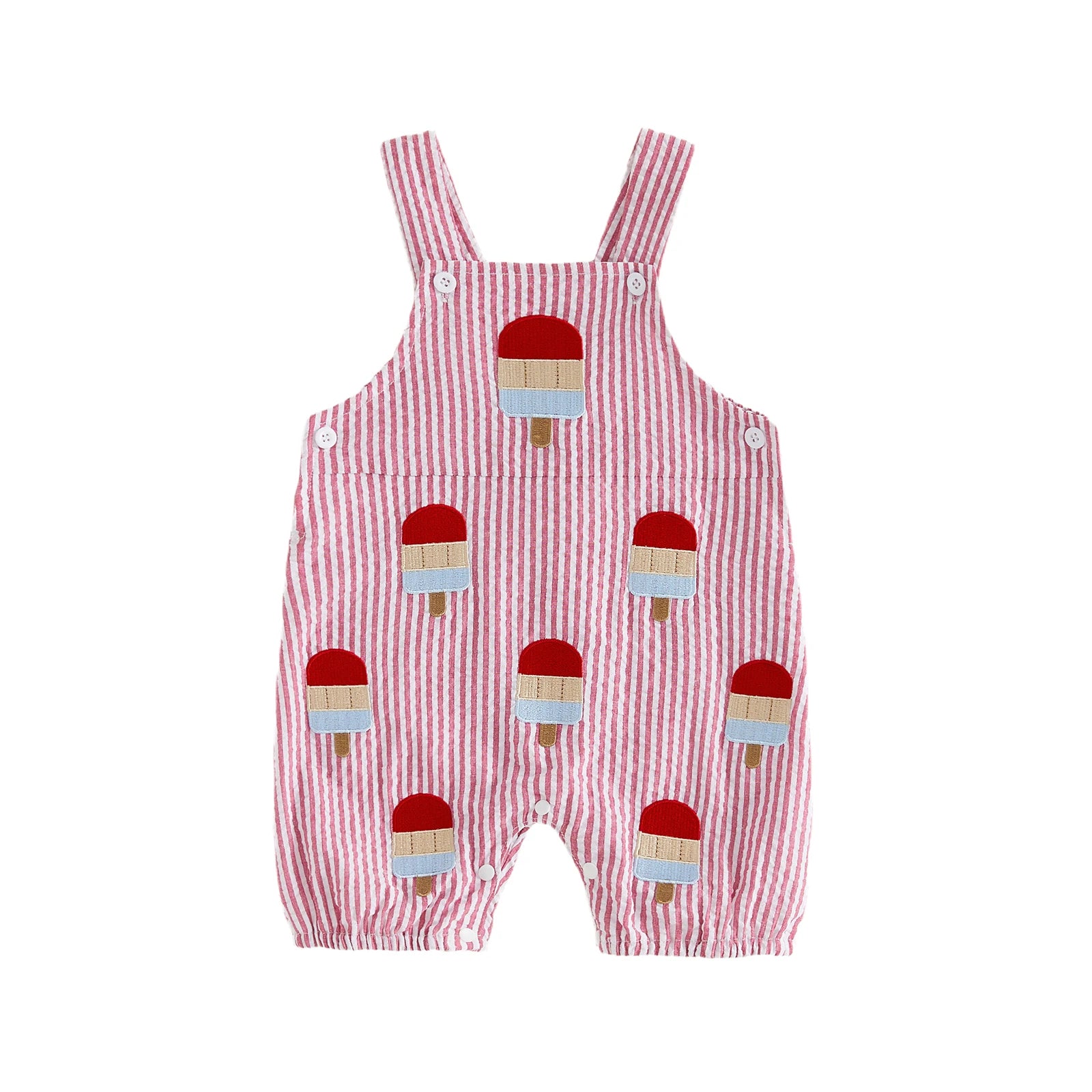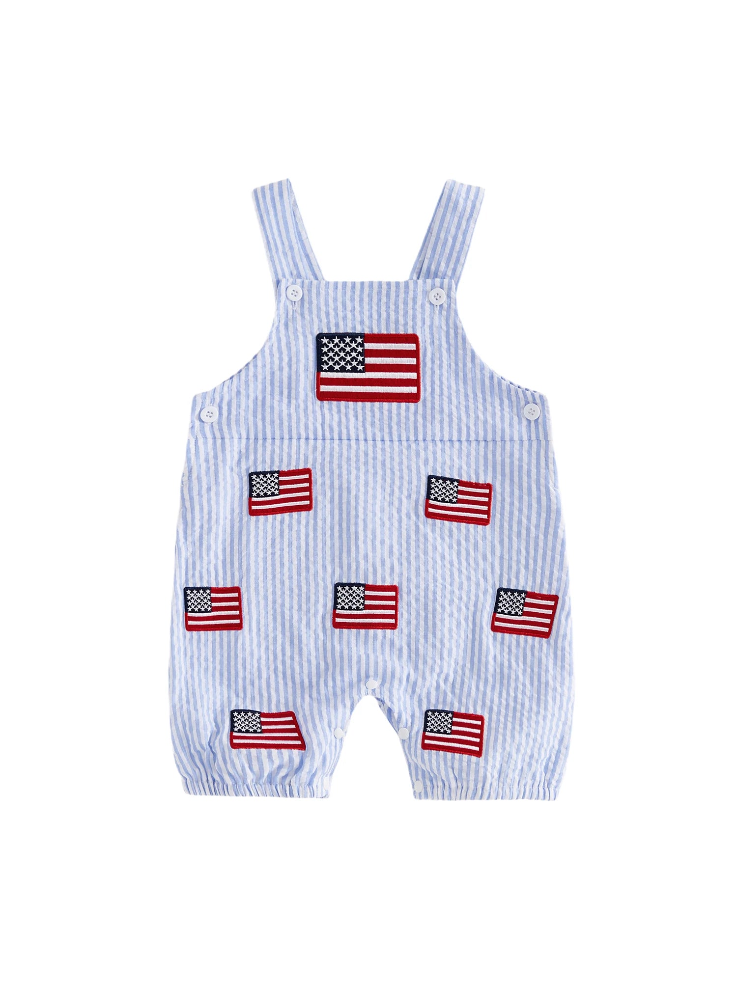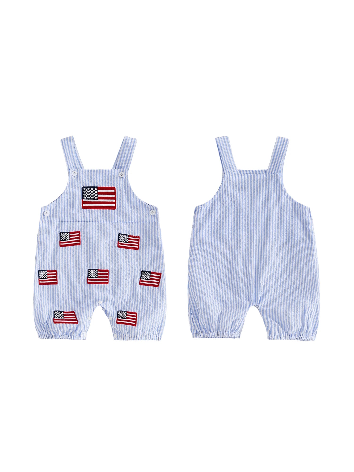 Like a small constellation stitched for a summer porch, this sleeveless sundress and romper pair wears stars and stripes as a gentle blessing. Red, white, and blue embroidery and a sweet bow catch the light of parades and picnic afternoons, while soft, easy fabric lets little bodies breathe and twirl. The V‑neck and horn‑button details lend a simple, hand‑tended charm; the cut is true to size so caretakers can dress and go with calm hands. A bright, wearable keepsake for first fireworks and quiet family mornings—playful, proud, and tender as a pocket of sunlight.