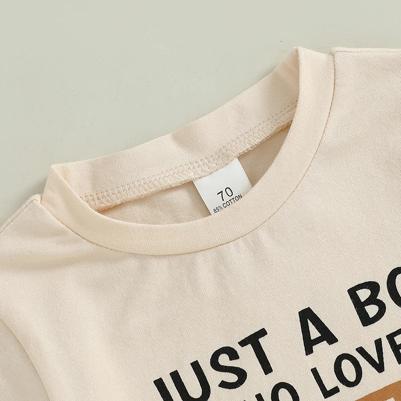 Like a small wanderer toddling through sun‑bright fields, this summer outfit gathers a little one in soft, cotton‑blend comfort. The short‑sleeve tee, printed with a cheerful tractor and letters, feels as warm and familiar as a farm path at midday, while the solid shorts—easy at the waist and light on growing legs—move with every tumble and giggle. The pullover shape keeps dressing a calm hearthstone ritual, simple and steady for busy hands. True to size and gentle on tender skin, it becomes a sweet keepsake for bright days when children follow their own little trails through the world.